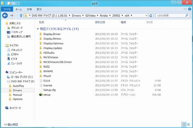 E Windows8 32bitをインストールしている場合は、「x86」を、 Windows8 64bitをインストールしている場合は、「x64」をダブルクリックします。
